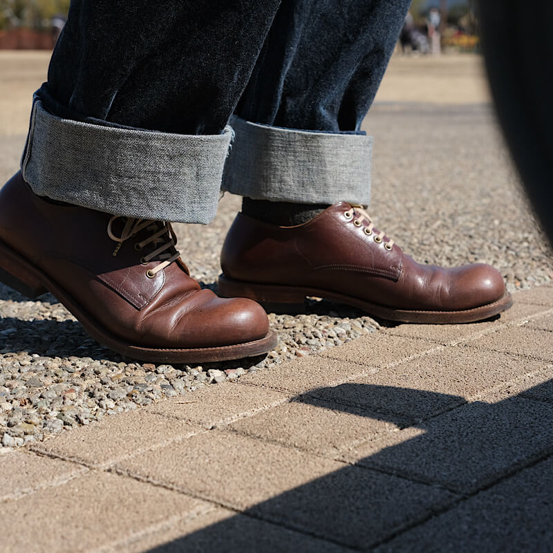 天然素材の革には、もともとの表情や使用によるシワが現れます。それも一足ごとの個性です。適切なお手入れで、美しい風合いへと育っていきます。