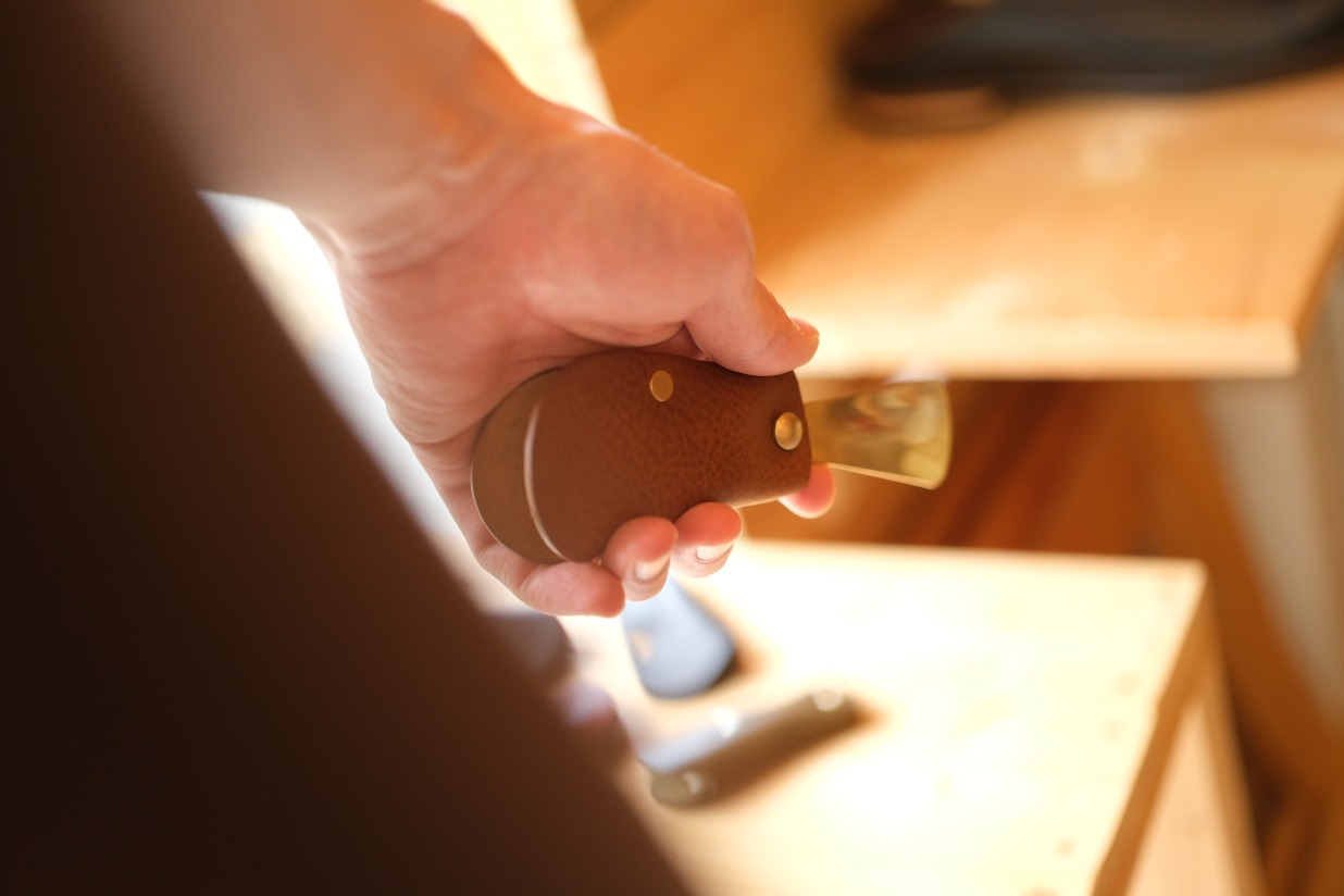 握った際の革の質感、金具は真鍮素材ですので革と同様にエイジングも十分にお楽しみいただけると思います。