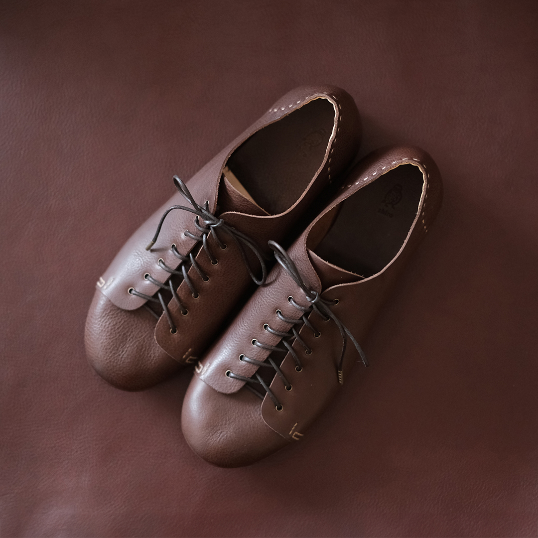 shiroの『顔』とも言えるデザインの革靴です。靴ヒモを通す羽根の可動域が広いため、サイズの調整がしやすいです。長時間の歩行にもとても向いているので最初の一足にオススメです。このイージーオーダーでは【マッケイ製法】で製作させて頂きます。