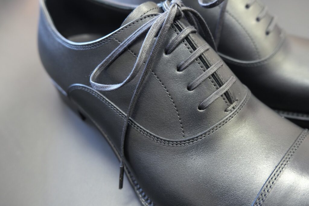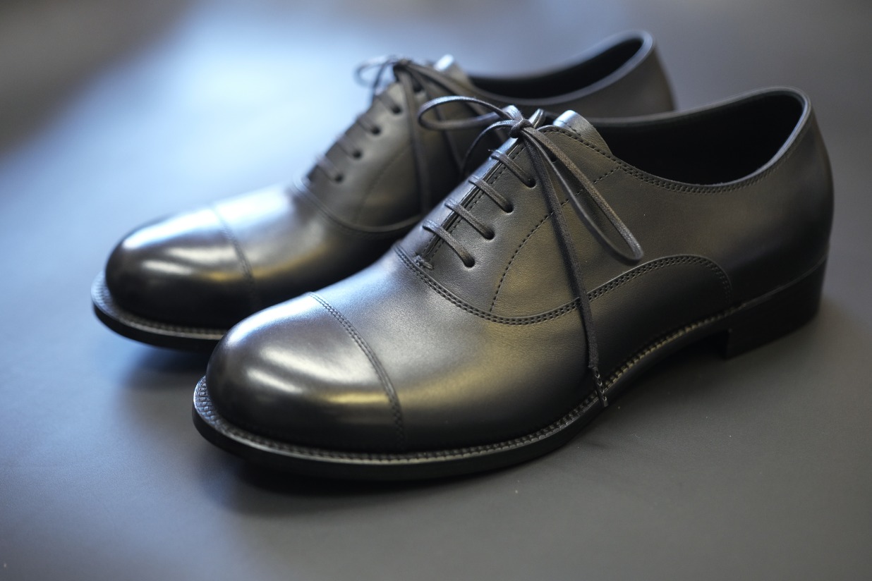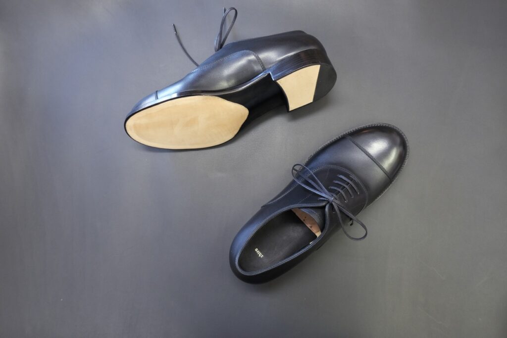 見た目はマイルドですが履いた際の足元はとても締まって見えます。フォーマルなシーンを想定して一足は持っていたいデザインです。